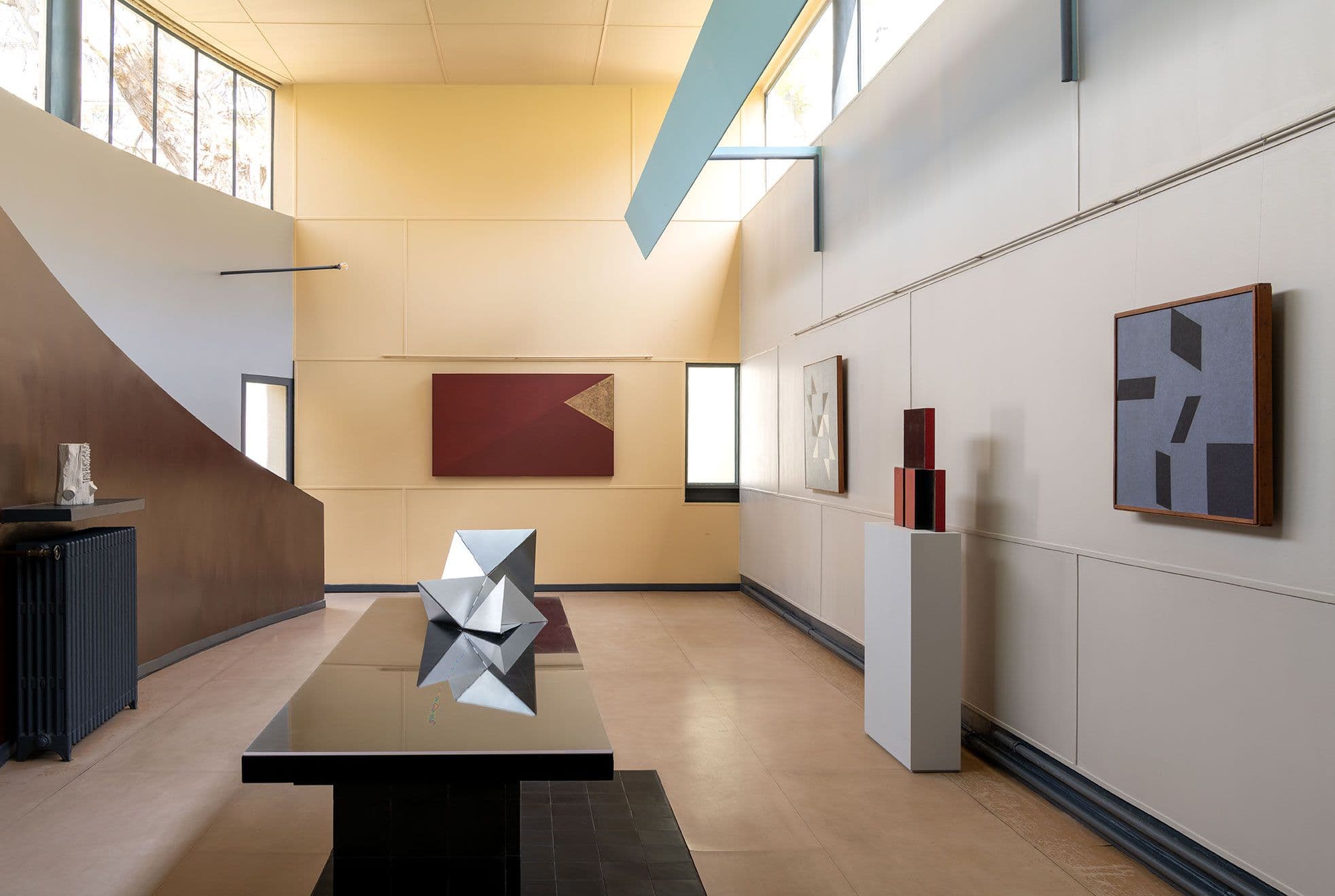 For the first time in history, a Brazilian exhibition takes place at Maison La Roche, proposing an unprecedented encounter between Brazil and the architectural and aesthetic legacy of Le Corbusier. Commissioned by ABERTO, many of the works were created specifically for the spaces of the house, engaging directly with its original color palette, precise proportions, and the spatial circulation envisioned by the architect.